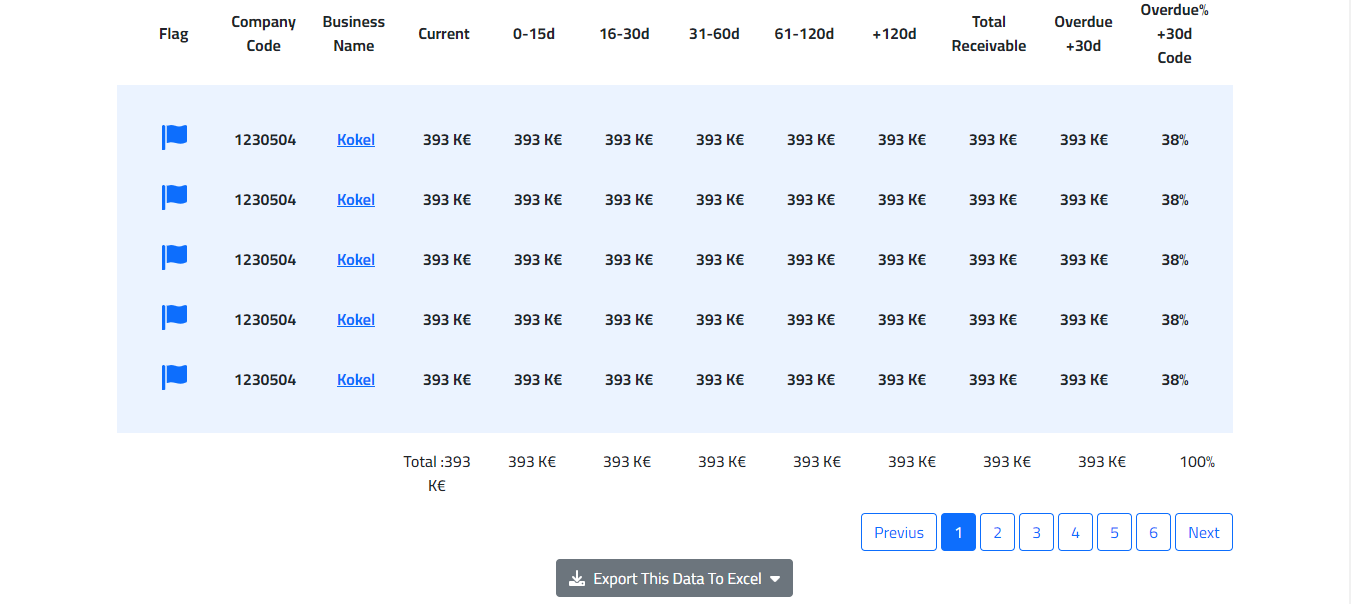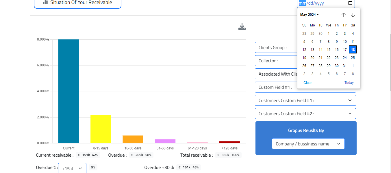For example, a descending sort on overdue more than 90 days will show customers who have unpaid bills for a long time with as consequences a high risk for the cash and the profitability of your business.
