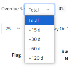 It's possible to set the overdue %, in order to concentrate your efforts from a certain bracket: