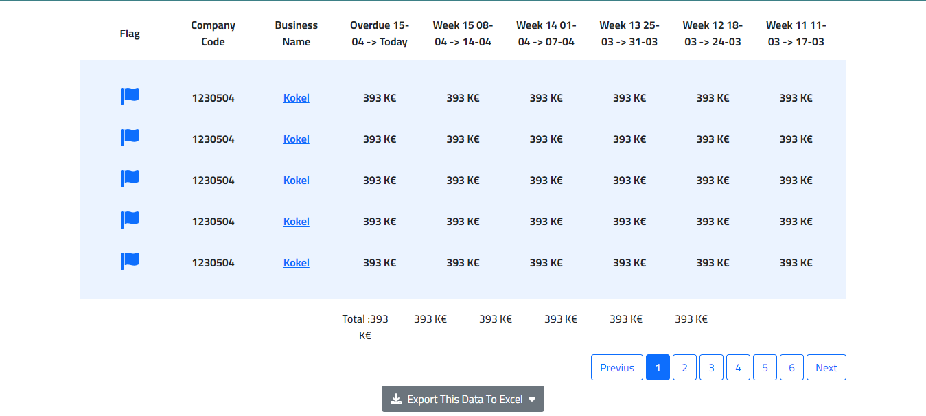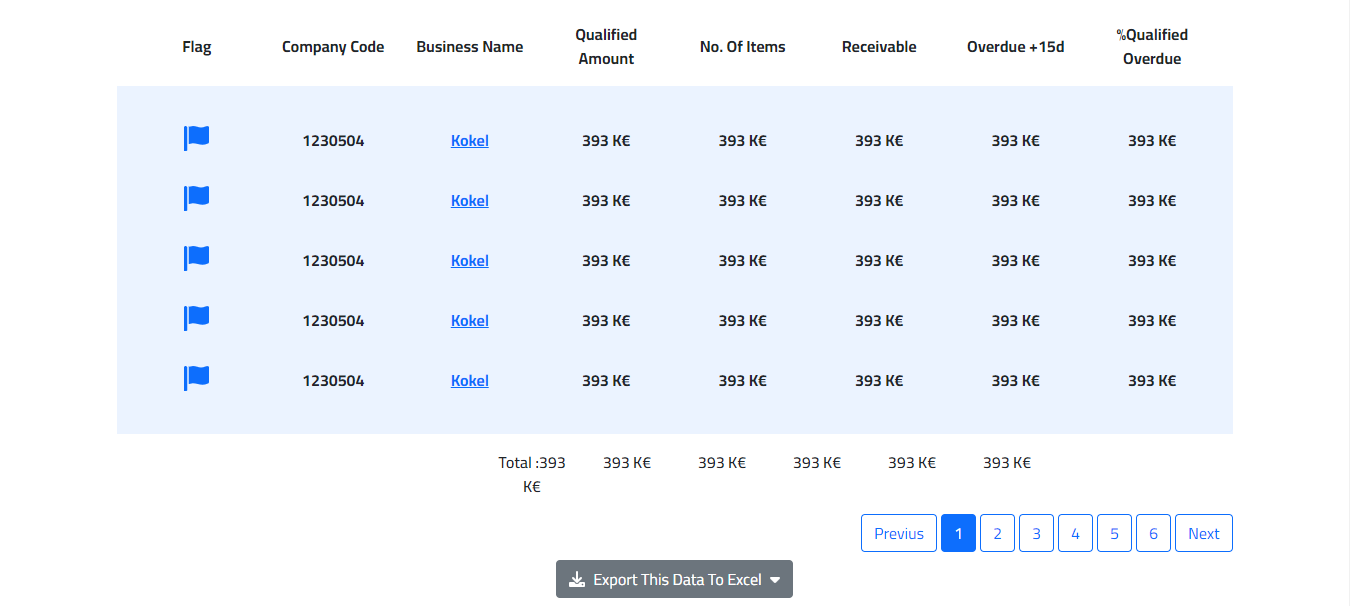 The report also shows the qualification rate and amount of overdue items, which are keys indicators in determining whether the monitoring of overdue receivables is optimal.